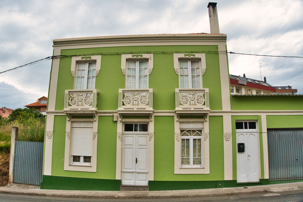 De decoración contenida, combina de manera exquisita las formas vegetales y geométricas en los recercados de los huecos y en los frentes de los balcones. ¡ TE PUEDE INTERESAR ! Casa de DopicoCasa de DíazLas casas de Sada y sus ContornosLa Escuela de “Sada y sus Contornos”