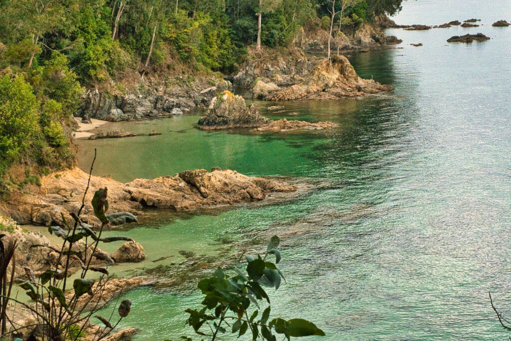 Continuando hacia el Noroeste desde la playa de Arnela, entre Punta Arnela y Punta Armenteiro, encontramos varias calas en sucesión de características muy similares, aisladas, con rocas y escasez de arena.
